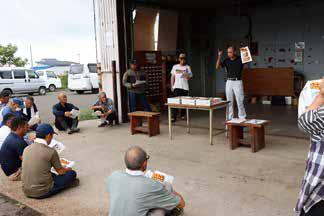 ミニトマト部会は、出荷最盛期に向けて旧浜田集出荷所で目揃え会を開催し、24名が参加しました。